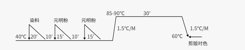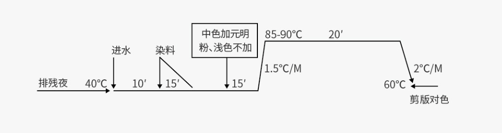 注:視設備不同,工藝需參照調整,本工藝適用于溢流、汽液、汽流設備染色。
